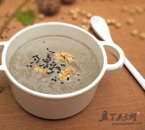 用料:黄豆55克、核桃仁10克、黑芝麻5克、清水适量。