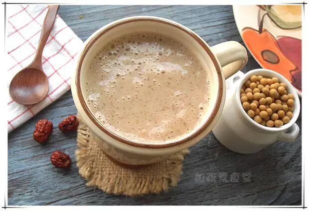 制法:1、将黄豆浸泡6—16小时;2、将红枣洗净去核,枸杞洗净备用;3、将泡好的黄豆、红枣和枸杞装入豆浆机,杯体内加入清水,启动豆浆机,十几分钟豆浆煮熟即可。