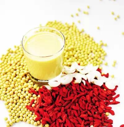 制法:1、将黄豆浸泡6—16小时,备用;2、将泡好的黄豆和枸杞装入豆浆机,杯体内加入清水,启动豆浆机,十几分钟豆浆煮熟即成。