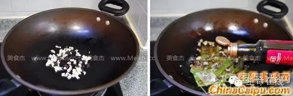 3.另起锅,小火炒香蒜蓉和豆豉,下辣椒,加适量鲜味酱油,出锅前烹少许醋即可