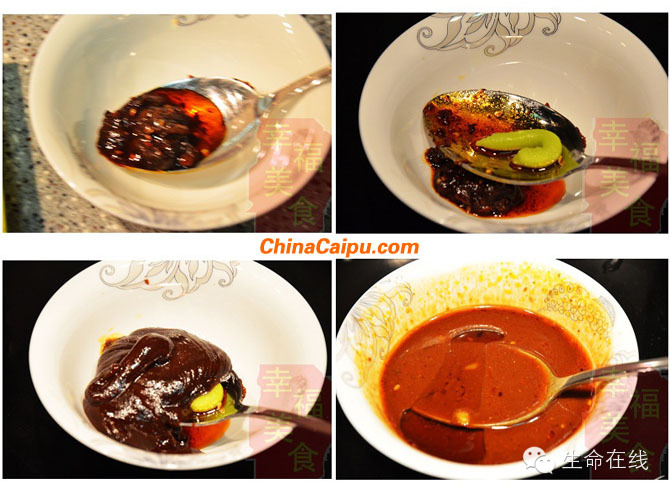 调料:甜面酱10克,辣酱10克,辣根2克,白糖2克,米醋4克 蘑菇精适量