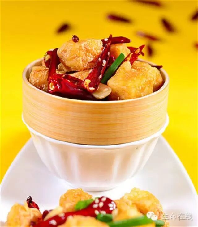 2、炸豆腐时,火不能太大,炸到金黄发硬后,会有香脆可口。